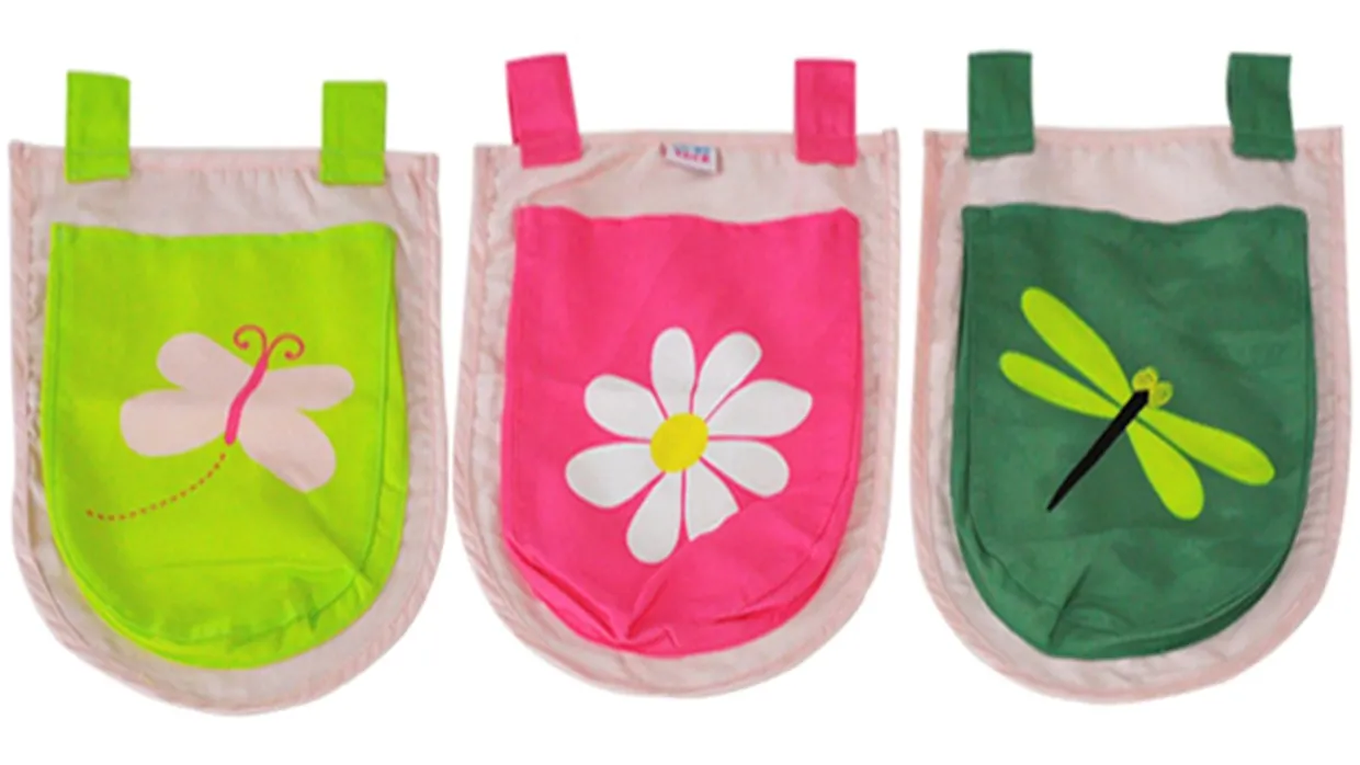 - Vrolijke uitstraling: elk zakje heeft een roze achtergrond met een kleurrijk vakje met print, wat bijdraagt aan een speelse sfeer in de kinderkamer