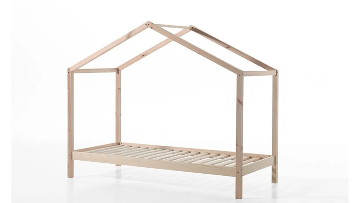Bed Dallas als huis wordt geleverd met bedbodem en dakframe, zonder matras.