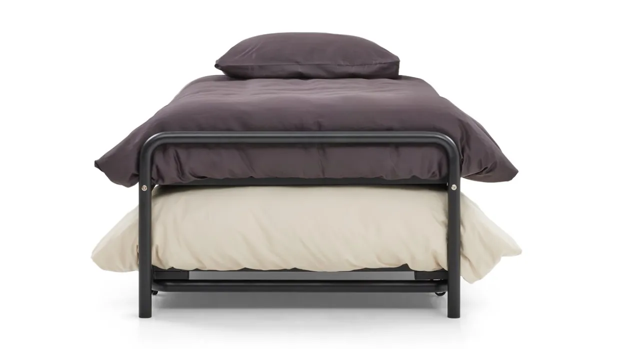 Beide bedden hebben een metalen raster waarop het matras komt te liggen en het onderbed is voorzien van wieltjes. Fijn als je regelmatig logés krijgt en dan een tweepersoonsbed tevoorschijn wilt toveren. Het bed & onderschuifbed wordt geleverd inclusief bedbodem en exclusief matras.