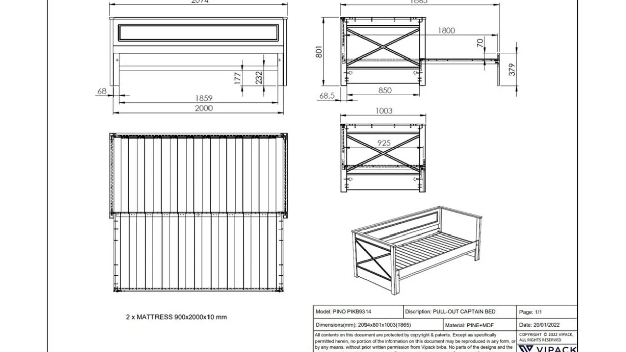 Kajuitbed paneel uitschuifbaar Pino wordt geleverd met bedbodem, zonder matras.