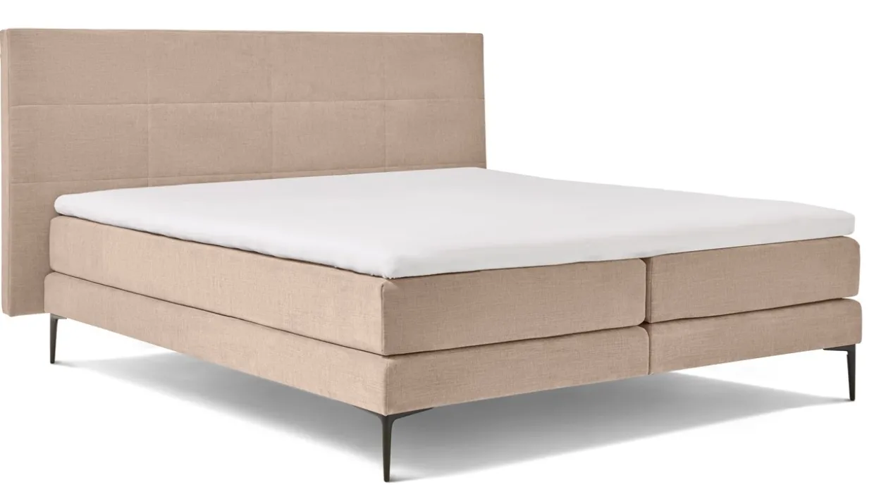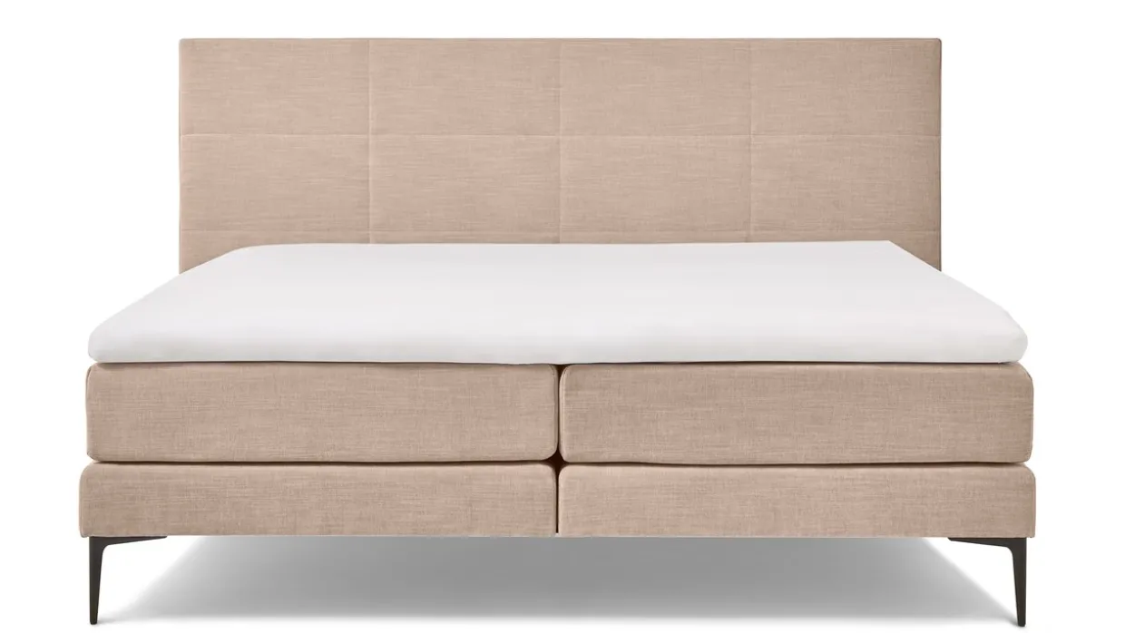 Boxspring Blocks vlak met gestoffeerd matras is verkrijgbaar in meerdere maten en is geschikt voor een gewicht tot 120 kg.