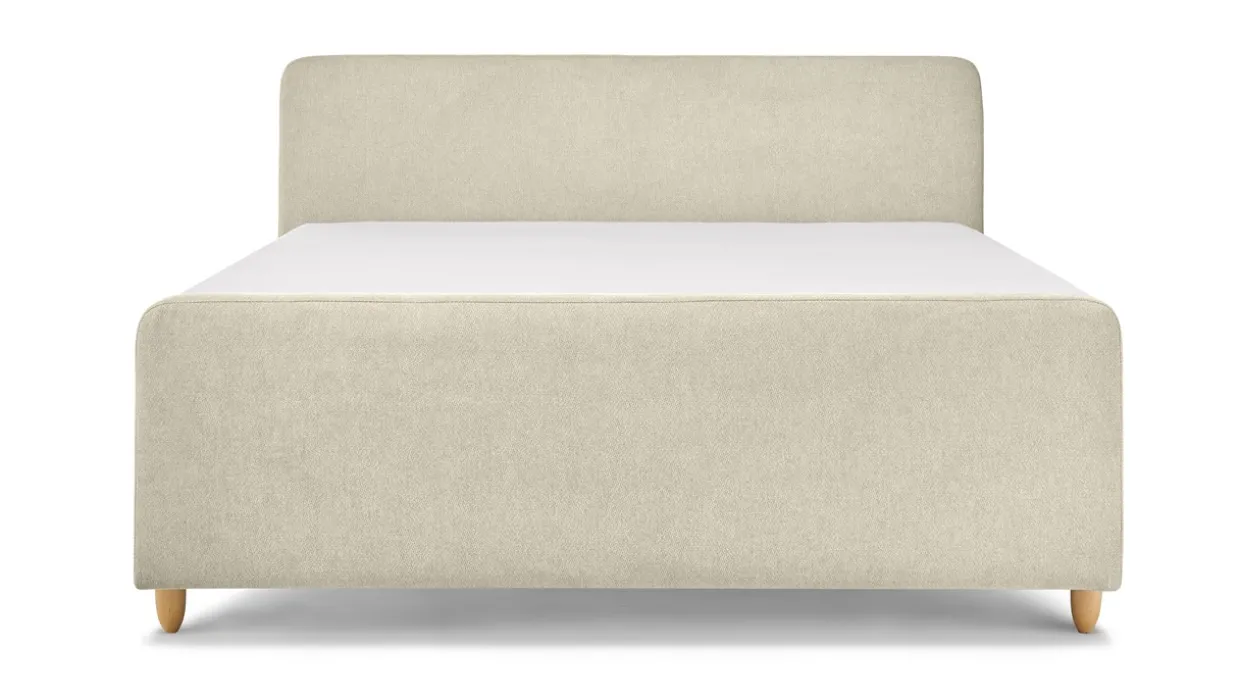 Met Boxspring Round vlak met gestoffeerd matras met voetbord haal je een luxe boxspring in huis voor een scherpe prijs. Door de ronde vormen en bolle houten pootjes, in combinatie met de luxe stof, krijg je een lichte speelse en luxe uitstraling in de slaapkamer. Deze set heeft stevige boxen, Luxe 250 pocketveermatrassen met 7 comfortzones, een Luxe HR topmatras van koudschuim én een voetbord. Het matras is wat steviger maar ligt toch lekker zacht door het polyether afdeklaagje.