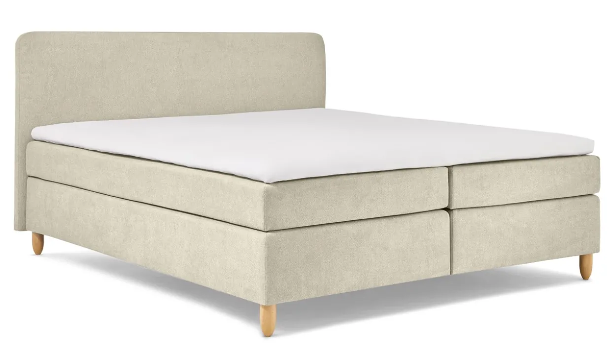 Boxspring Round vlak met gestoffeerd matras is verkrijgbaar in meerdere maten en is geschikt voor een gewicht tot 120 kg.
