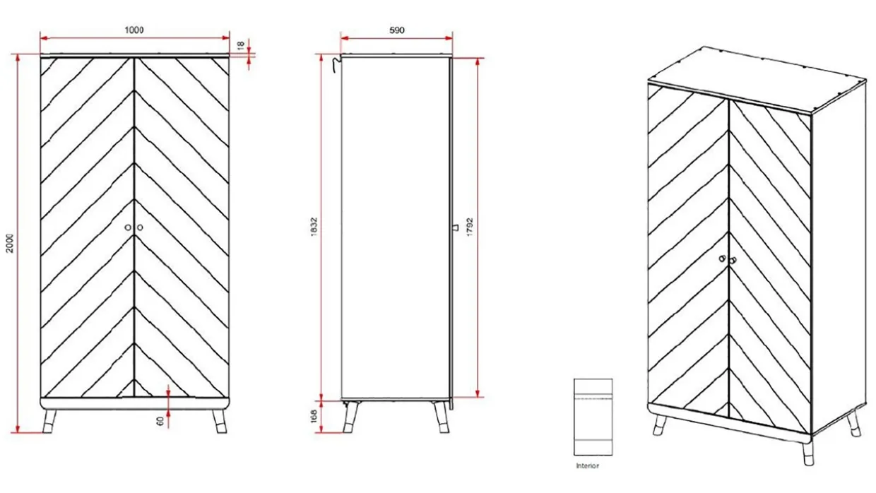 | Kastverdeling per kastdeel | 2 legplanken en 1 roede |