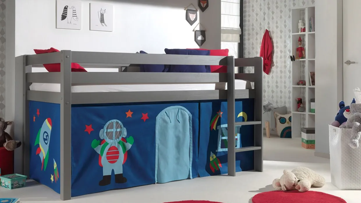 - Geborgenheid: in combinatie met de halfhoogslaper zorgt het gordijn voor een afgesloten gevoel, wat bijdraagt aan een veilige en geborgen slaapomgeving.
