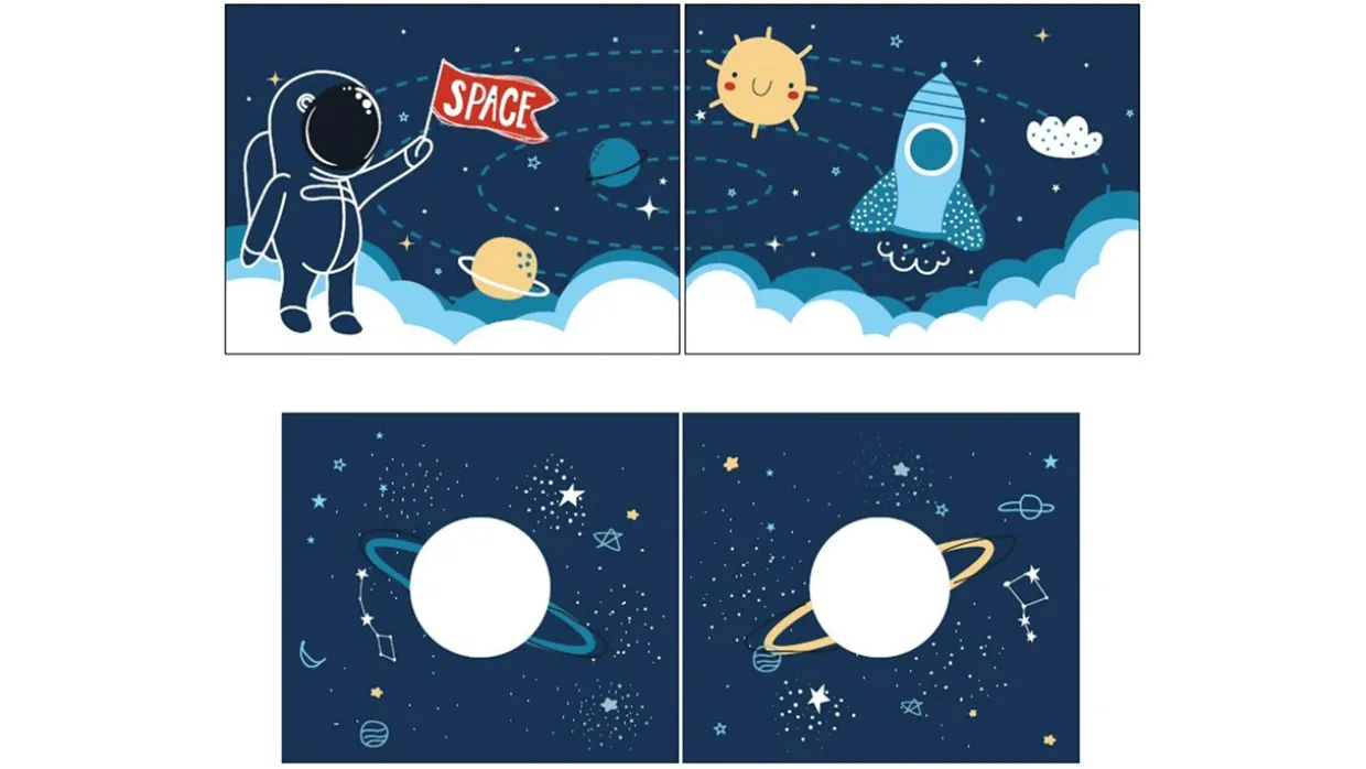 - Avontuurlijk ontwerp: met afbeeldingen van ruimtevaart die de verbeelding prikkelen