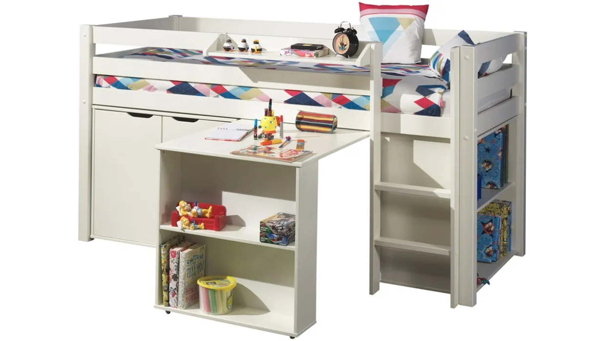 De ruimte onder het bed is multifunctioneel en kan worden ingericht als speel- of opbergruimte. Het Pino-assortiment biedt diverse uitbreidingsmogelijkheden, zoals een bureau, boekenkast, commode, hangplank of een leuke textielset, waarmee je het bed kunt aanvullen en personaliseren.