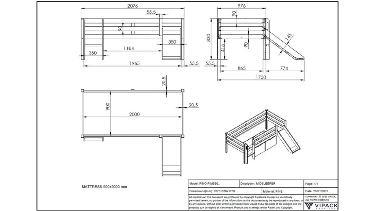 Met de Halfhoogslaper Pino met glijbaan slaapt je kind altijd héérlijk zacht. De speelse en avontuurlijke halfhoogslaper laat je kind de wildste avonturen beleven. En na helemaal uitgeput te zijn van alle avonturen overdag wordt dat ’s nachts héérlijk zacht slapen. En als je kind toch niet zo’n fan is van een halfhoogslaper, de Vipack Pino serie heeft nog veel meer soorten bedden waar ze net zo lekker op kunnen slapen als op blauwe veren.