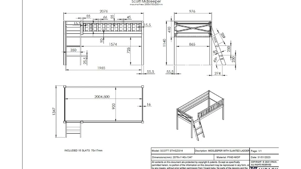 Halfhoogslaper Scott wordt geleverd met bedbodem, zonder matras.