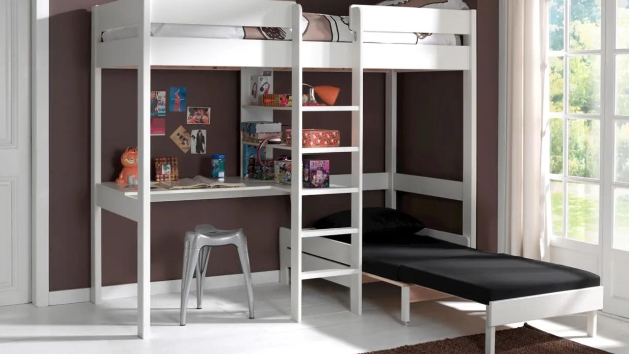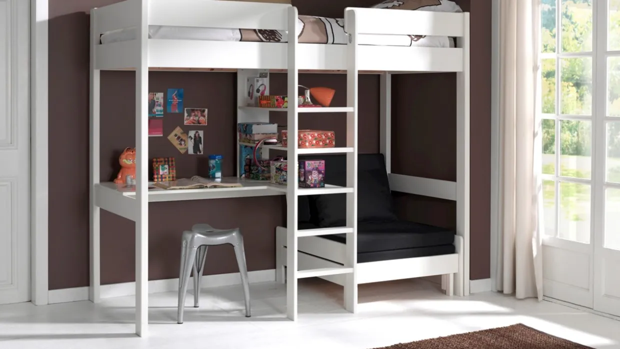Hoogslaper Pino met zetelbed wordt geleverd met bedbodem, zonder matras.
