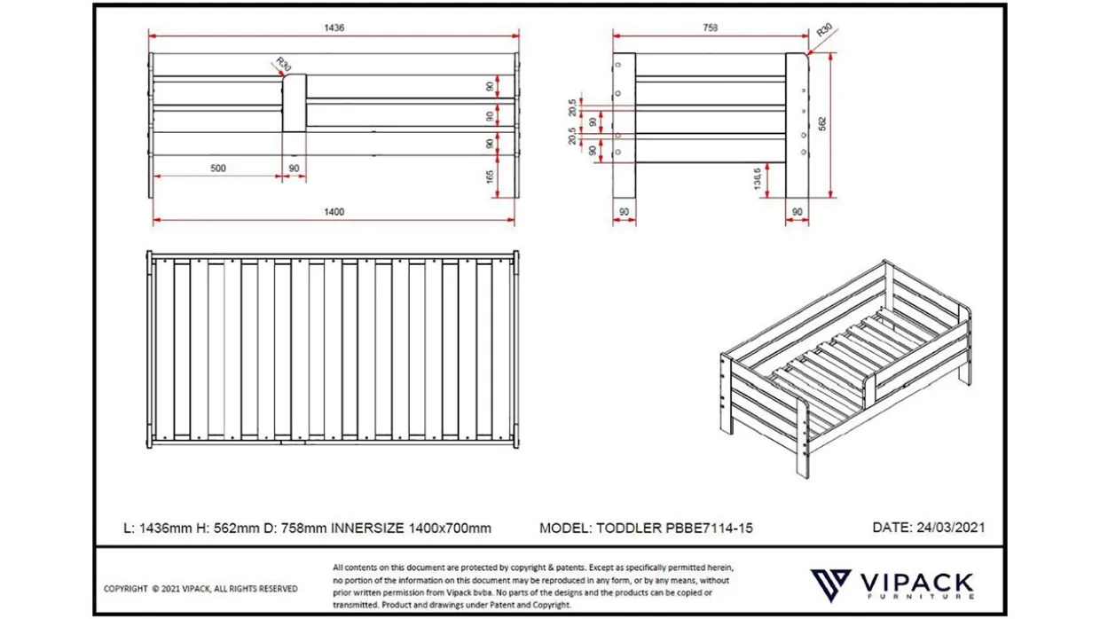 Geen stress, geen zorgen, met Baby Bed 71 slaapt je kind heerlijk tot aan de morgen. Jonge kinderen willen nog wel eens uit bed rollen en pijnlijk terecht komen. Voor ieder geluidje wat je hoort kom je dan de kamer binnengestormd om te kijken wat er aan de hand is. Maar dit kinderbed heeft een fijne rand om het hele bed zitten waardoor je kind nergens heen kan. Scheelt weer wat kopzorgen.