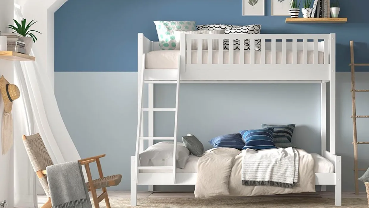 Stapelbed Scott 3-persoons wordt geleverd met bedbodems, zonder matrassen.
