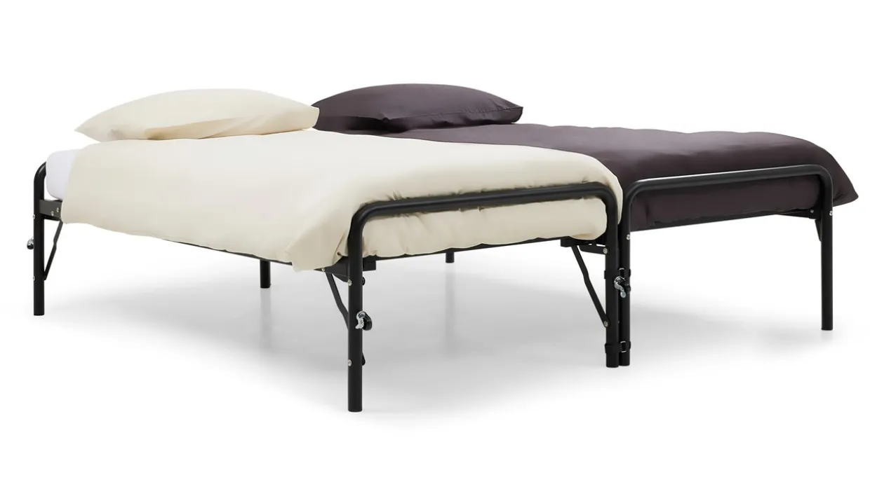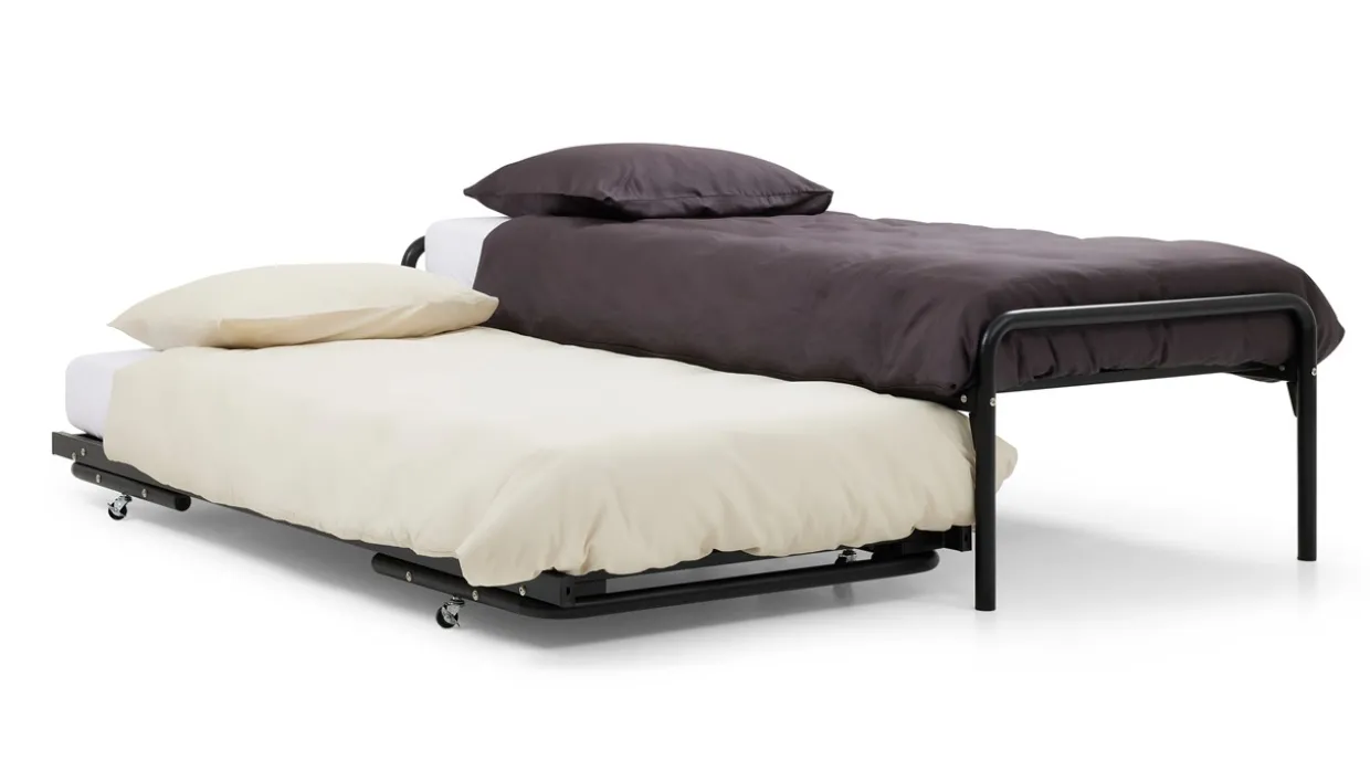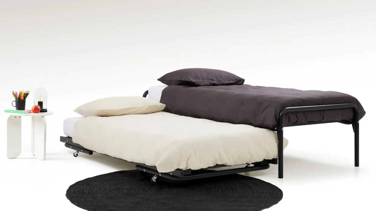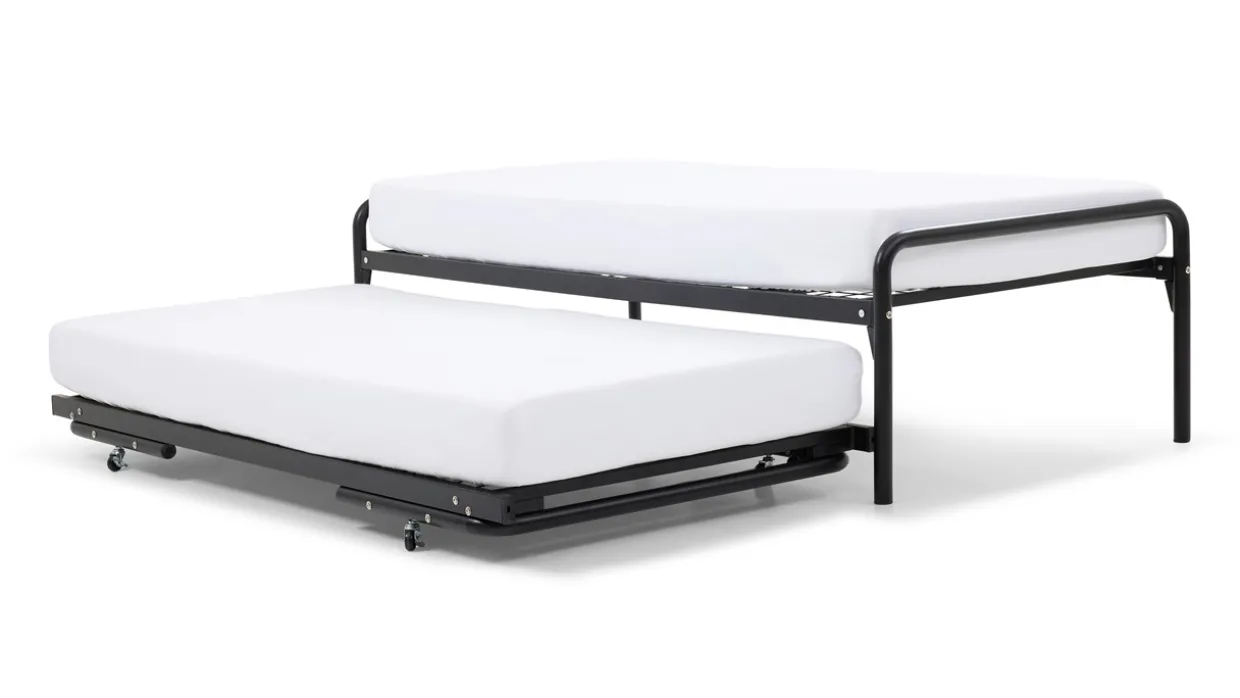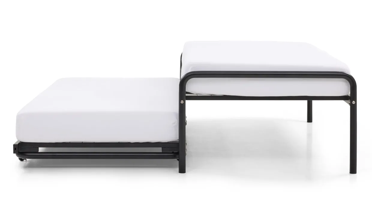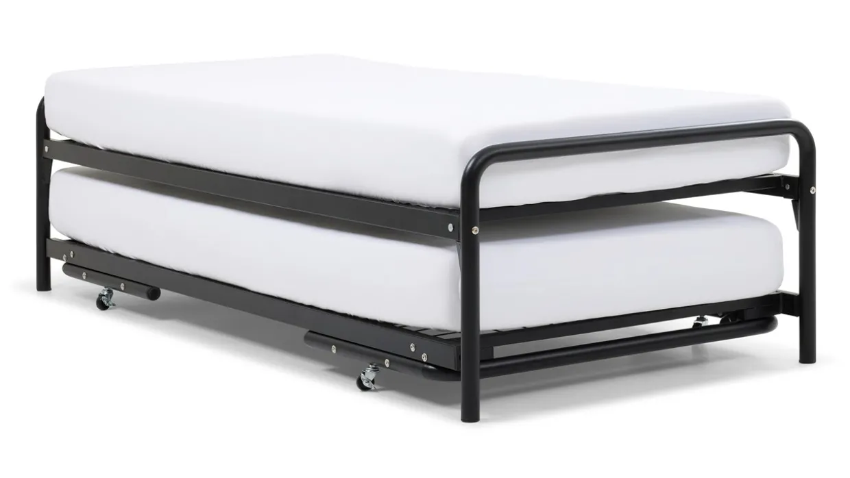 Beide bedden hebben een metalen raster waarop het matras komt te liggen en het onderbed is voorzien van wieltjes. Fijn als je regelmatig logés krijgt en dan een tweepersoonsbed tevoorschijn wilt toveren. Het bed & onderschuifbed wordt geleverd inclusief bedbodem en exclusief matras.
