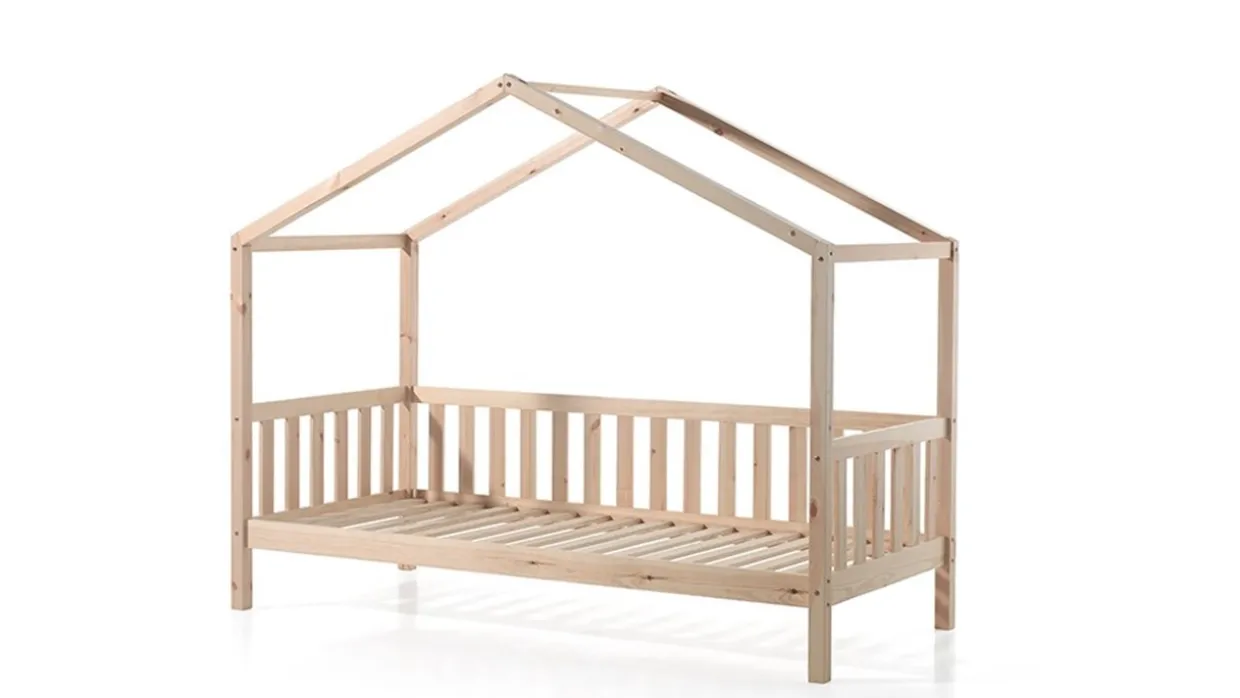 Bedbank Dallas als huis met slaaplade wordt geleverd met bedbodem en dakframe, zonder matras.