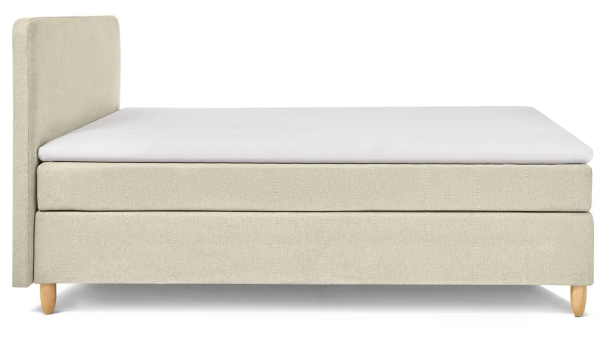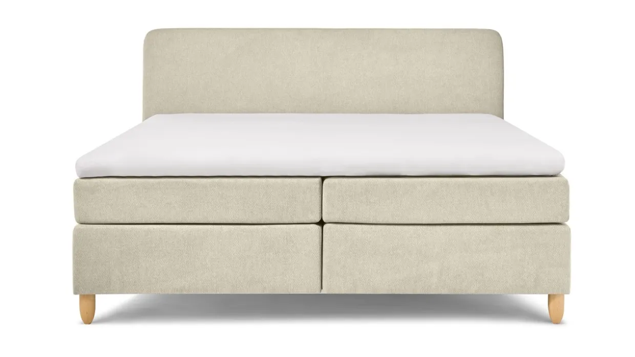 Boxspring Round vlak met gestoffeerd matras is verkrijgbaar in meerdere maten en is geschikt voor een gewicht tot 120 kg.