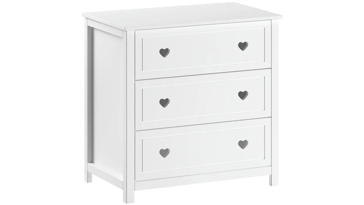Deze commode met optioneel opzetstuk is niet alleen een mooie aanvulling in de babykamer, maar ook zeer praktisch door de drie ruime lades die beschikbaar zijn. Zonder opzetstuk kan deze commode ook prima dienen in een kinder- of jeugdkamer. Laat je verleiden door de charme van deze kamer met hartjesdetail.