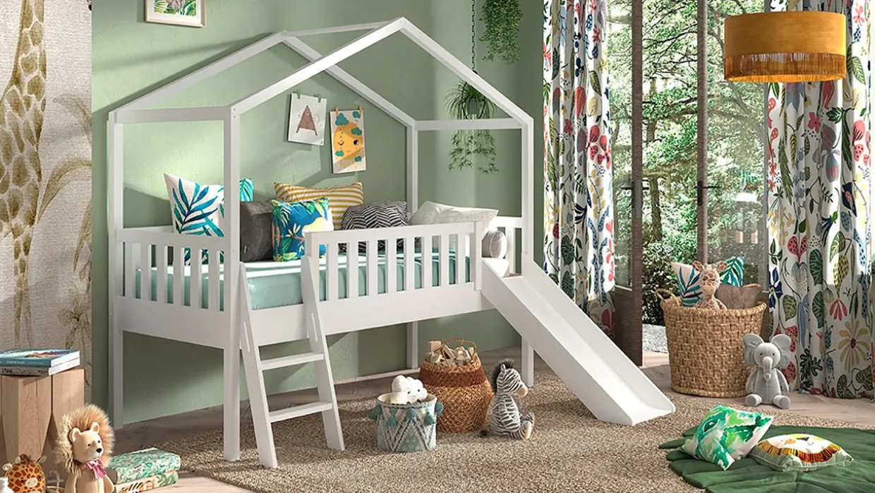 Met Halfhoogslaper Dallas als huis met glijbaan geef je je kind een thuis in het huis. De slaapkamer is super belangrijk voor kinderen. Dat is (meestal) de enige kamer in huis die écht van hen is. Daarom wordt de slaapkamer vaak helemaal vol gebombardeerd met alles wat ze hebben en tegenkomen. Zo claimen ze ‘hun’ stukje huis. Maar met dit huisvormige bed geef je ze in huis een thuis. Home sweet Dallas home.