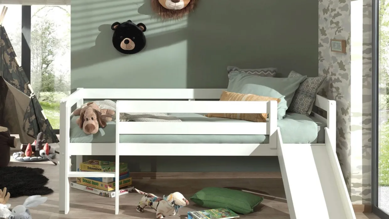 Halfhoogslaper Pino met glijbaan wordt geleverd met bedbodem, zonder matras.