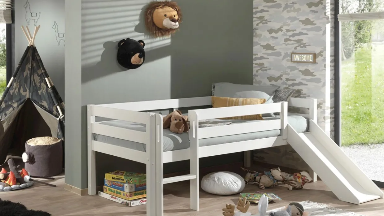 Met de Halfhoogslaper Pino met glijbaan slaapt je kind altijd héérlijk zacht. De speelse en avontuurlijke halfhoogslaper laat je kind de wildste avonturen beleven. En na helemaal uitgeput te zijn van alle avonturen overdag wordt dat ’s nachts héérlijk zacht slapen. En als je kind toch niet zo’n fan is van een halfhoogslaper, de Vipack Pino serie heeft nog veel meer soorten bedden waar ze net zo lekker op kunnen slapen als op blauwe veren.