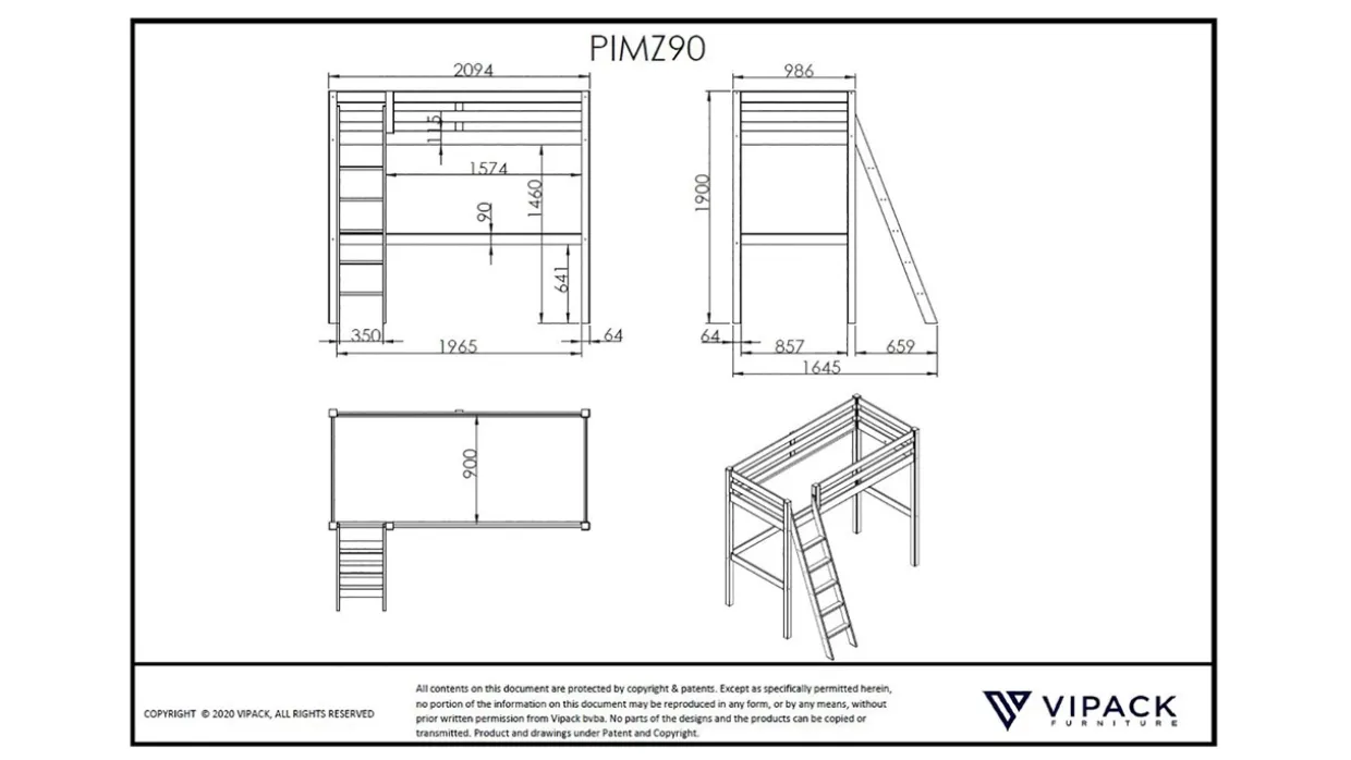 Met de Hoogslaper Pino Mezzanine slaapt je kind altijd héérlijk zacht. De speelse en avontuurlijke hoogslaper laat je kind de wildste avonturen beleven. En na helemaal uitgeput te zijn van alle avonturen overdag wordt dat ’s nachts héérlijk zacht slapen. En als je kind toch niet zo’n fan is van een halfhoogslaper, de Vipack Pino serie heeft nog veel meer soorten bedden waar ze net zo lekker op kunnen slapen als op blauwe veren.
