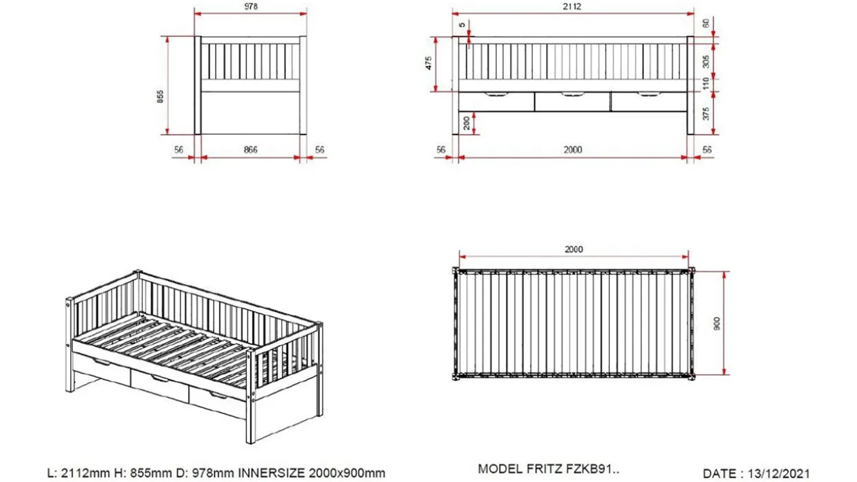 Kajuitbed Fritz wordt geleverd met bedbodem, zonder matras.