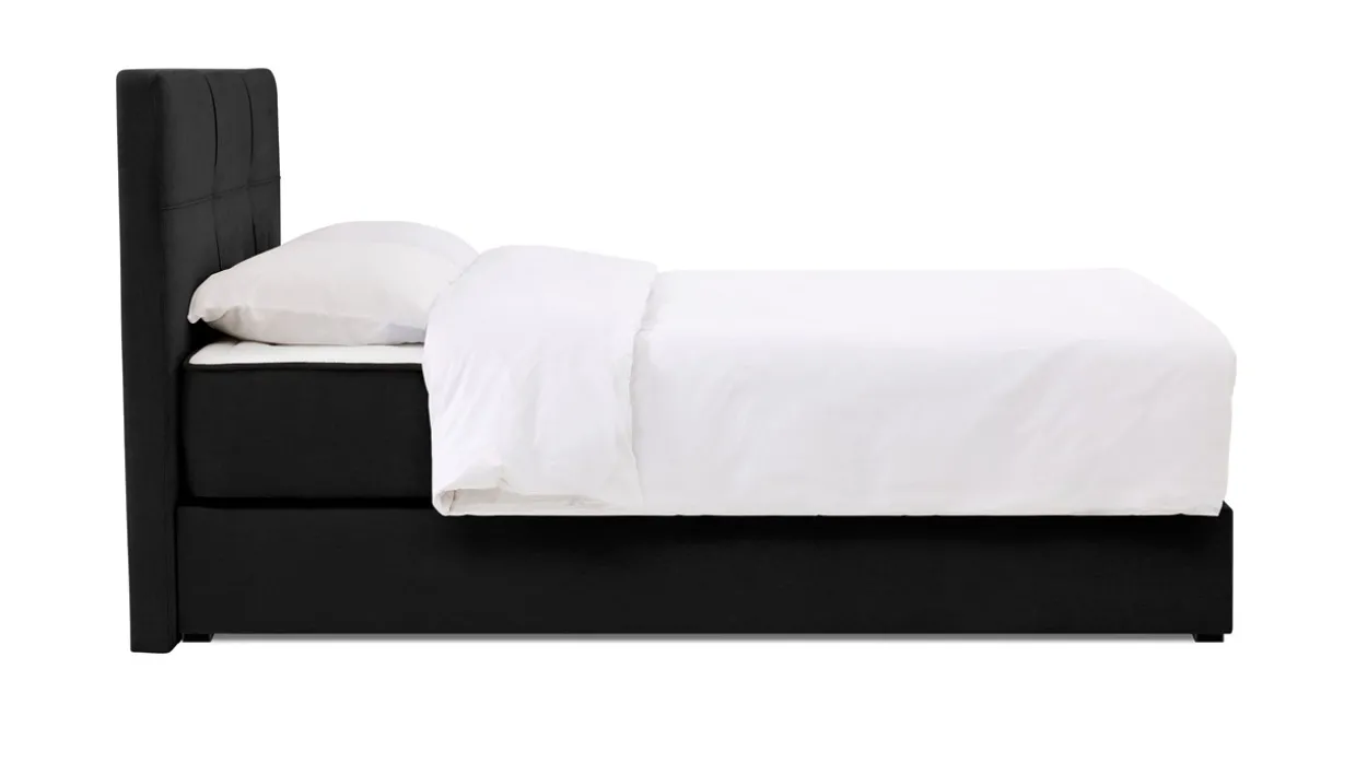 Deze uitvoering van Mani wordt geleverd met ingebouwde bedbodem en gestoffeerd(e) pocketveermatras(sen). Liever ander(e) matras(sen) of je huidige matras(sen) erop? Ook dat kan! Kies dan voor de uitvoering zonder matrassen.