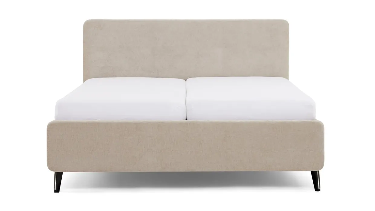Bed Sunna heeft een ingebouwde bedbodem (lattenbodem), maar leveren we zonder matras(sen). Ieder matrastype, van traagschuim tot pocketveer, is geschikt voor deze bedbodem.