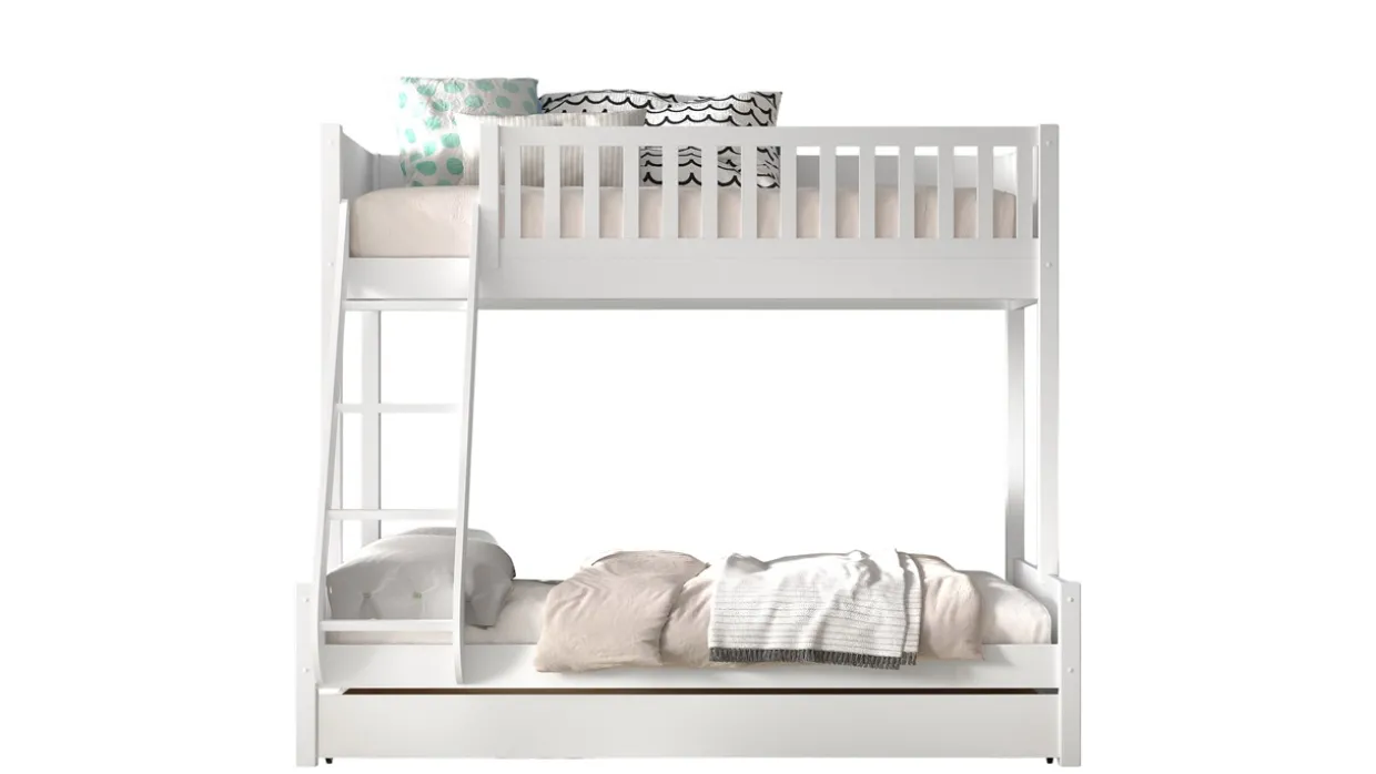 Stapelbed Scott 3-persoons wordt geleverd met bedbodems, zonder matrassen.
